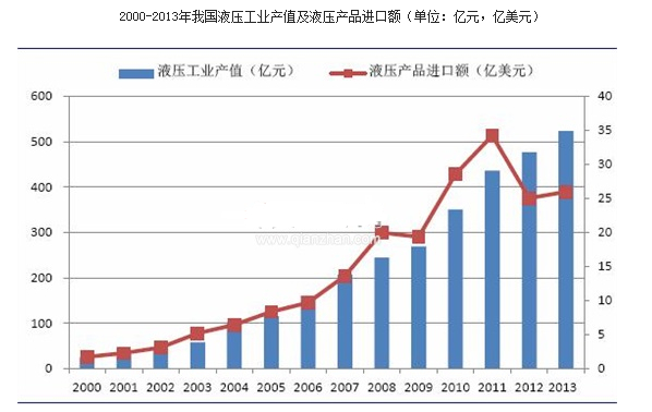 然而我國液壓行業大而不強的特點很明顯,主要問題是低端液壓件過剩,競爭十分激烈;而高端變量液壓元件卻嚴重短缺,每年仍需要進口大量的液壓產品。例如2011年進口額曾經達到34億美元的高點,占到當年國內產值的50%;近兩年由于挖掘機市場需求下滑,進口額有所下降,但也在25億美元左右,占到2013年行業產值的30%。同時中國液壓協會統計,工程機械是液壓產品最大的下游應用行業,按金額估算,國內約有1/3的液壓產品是用在工程機械上,這和日本的液壓行業類似;而工程機械中液壓挖掘機又是使用液壓件最多和要求最高的產品。