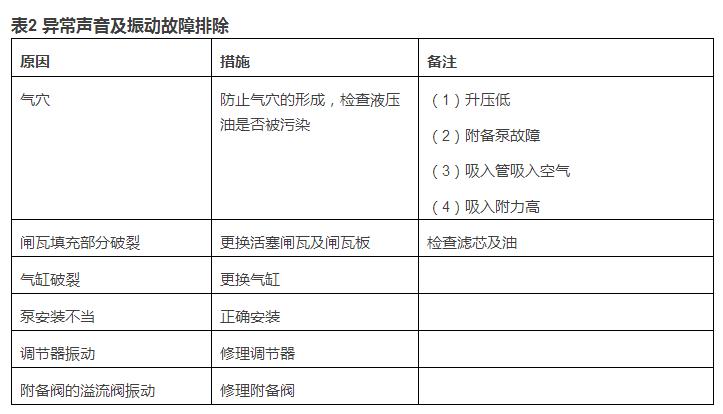 2. 異常聲音及振動故障排除見下表(挖掘機液壓泵修理)